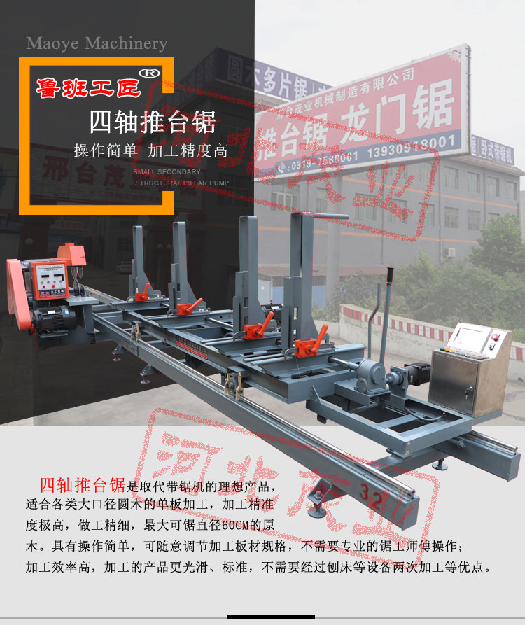 數(shù)控四軸推臺(tái)鋸產(chǎn)品是我公司在原有推臺(tái)鋸設(shè)備基礎(chǔ)上新設(shè)計(jì)開發(fā)的產(chǎn)品,具有高品質(zhì)、新外觀、多鋸片鋸切設(shè)計(jì),穩(wěn)定性高,安全、高效、操作維護(hù)簡單等優(yōu)點(diǎn)。